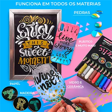 Não importa se você é iniciante ou experiente, com as Canetas Color Brush você pode pintar lindas flores e formas variadas nos mais diversos materiais. É algo maravilhoso e você não pode perder essa oportunidade de adquirir as únicas canetas que possuem tecnologia Acrylic Painter para você pintar em vários materiais e não sair na lavagem!