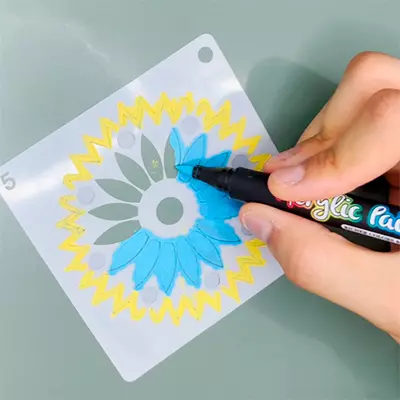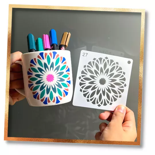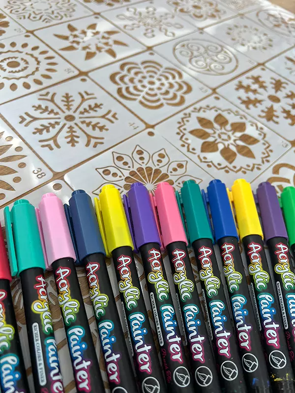 Sou novata na pintura e essas canetas foram minha salvação! Eu tinha muita dificuldade em usar tintas e acabava borrando tudo e sujandotoda todo o meu pátio. Agora eu consigo fazer artes lindas em pouco tempo, graças as canetinhas e os moldes vazados!
