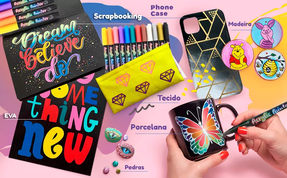 Todas amaram e não vivem sem as canetas e kit de moldes que pintam em vários materiais!